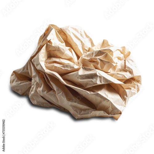 A wad of crumpled paper on a transparent and white background. PNG.
