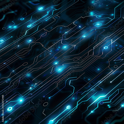 A wallpaper featuring a sleek and futuristic circuit board design with glowing blue accents.