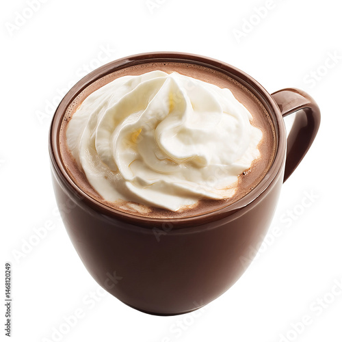 A warm cup of hot cocoa topped with whipped cream, perfect for a cozy moment.