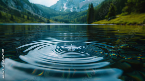 A water ripple in a serene mountain lake.