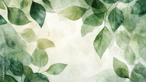 A watercolor background with a gradient of greens and yellows, featuring abstract leaves in the foreground