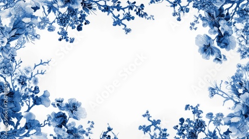 a watercolour chinoiserie frame with delicate blue outlines, exuding vintage charm and sophistication, presented in high resolution and isolated on a pristine white background. SEAMLESS PATTERN.