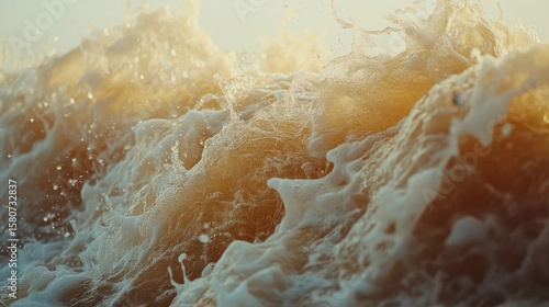 A wave crashing into the shore, with foam and spray in the air