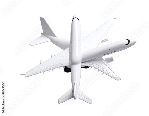 A white airplane model, stylized as interconnected, wings and fuselage in a starburst