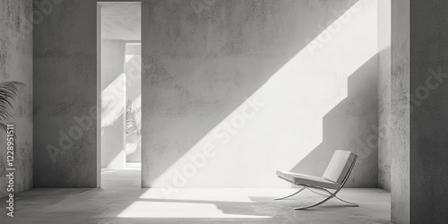 A white chair is sitting in a room with a white wall. The room is empty and has a minimalist feel