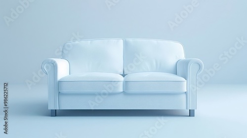 A white couch in a minimalist blue room.