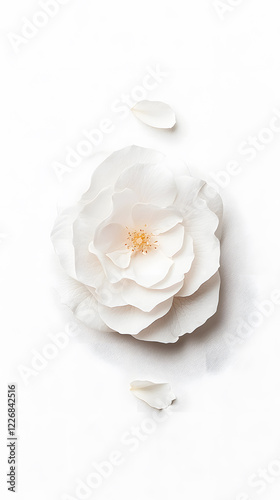 A white Damascus rose, top view, isolated white background