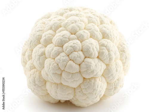A whole head of cauliflower, pristine white, isolated on a pure white background, vitamin, vegetable photography, background