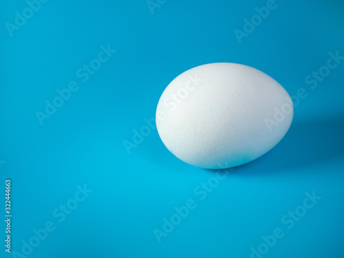 a whole white unpainted egg on a blue background