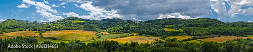 A wide panorama of the rolling hills in Tuscany Italy
