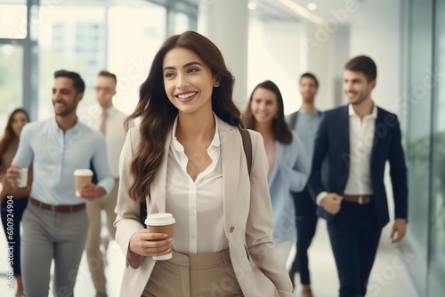 a woman in business clothes goes to work in the office. Business woman concept.
