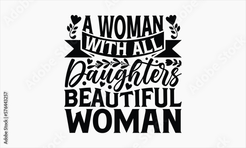 A Woman With All Daughters Beautiful Woman - Mother's Day T-shirt design, Lettering design for greeting banners, Modern calligraphy, Cards and Posters, Mugs, Notebooks, white background, svg EPS 10.