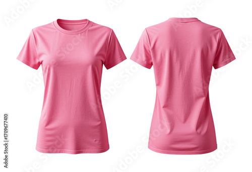 A Women's Pink Sports Or a Performance T-Shirt Mockup, Cut Out, Clipping Path, Isolated on a Transparent PNG Background.