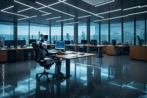 A working robot sitting in a modern office