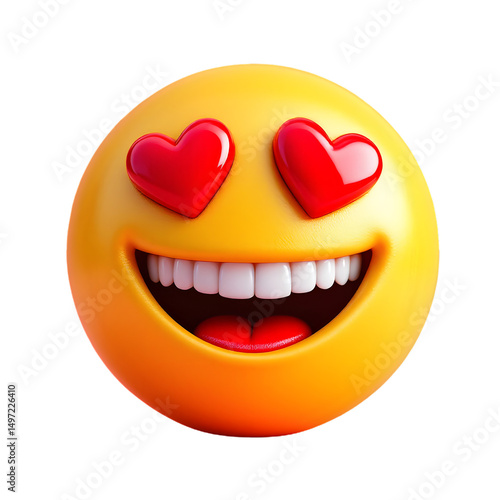 A yellow emoji with heart shaped eyes and a big smile on a black background