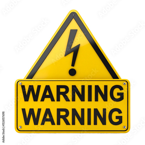 A yellow warning sign featuring a black lightning bolt symbol above the word "WARNING" repeated twice in bold black letters.
