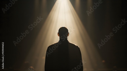 A young man in silhouette in a spotlight