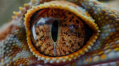 A zoomed in version of a gecko eye, realistic, photograph