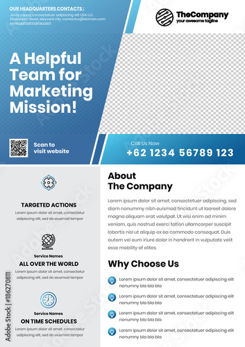 A4 Marketing Flyer template left title and left side service list style 7 in light blue color