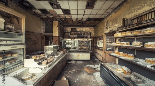 Abandoned bakery pastry shop interior slung derelict forsaken outcast