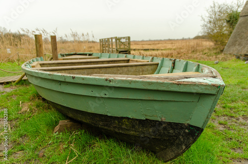 Abandoned boat in a middle of a field.
