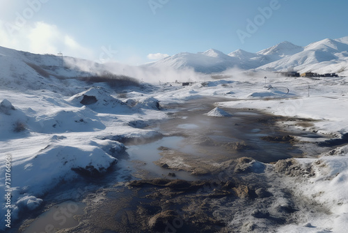 Abandoned Hot Springs in the winter mountains