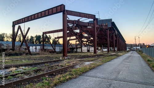 Abandoned Industrial Structure with Rusty Beams at Dusk
