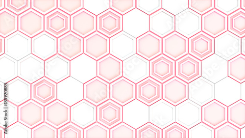 Abstract 3d background made of white hexagons on red glowing background