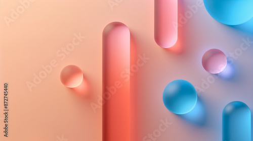 abstract 3D geometric shapes translucent glass material with soft gradients in pastel colors