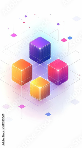 Abstract 3D Illustration - Colorful Cubes, Network, Technology