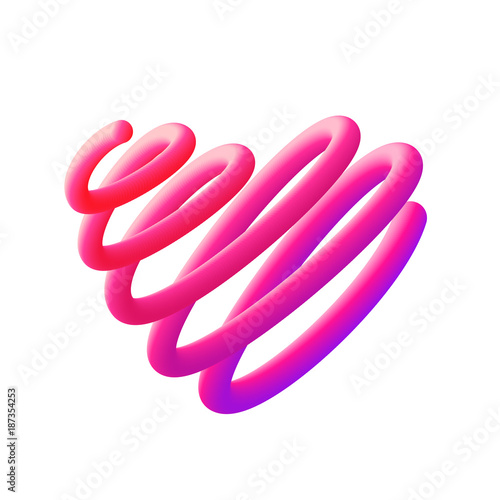 Abstract 3d liquid fluid color shape. Bright pink gradient blend 3D effect. Romantic vector illustration for valentines day with heart.