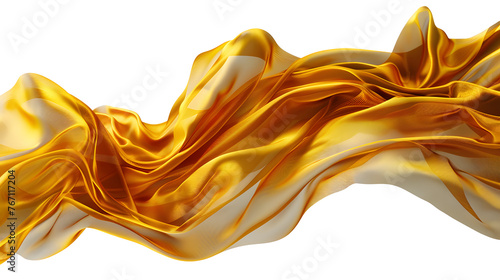 Abstract 3d realistic golden metal shape flowing isolated on transparent background