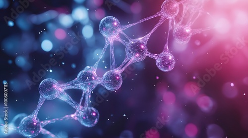Abstract 3D Render of Interconnected Spheres with Glowing Lines and Purple Bokeh Background