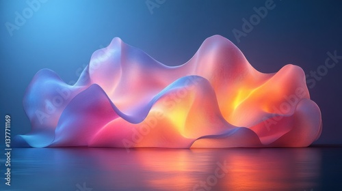 Abstract 3D Rendered Wave Forms in Neon Colors on a Reflective Surface