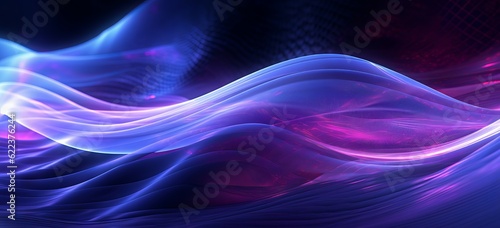 Abstract 3d rendering of waves in cold colors in a dark space. Abstract background with bright waves on a black background. Bright colorful soundwave pattern. blue and purple art of wavy patterns.
