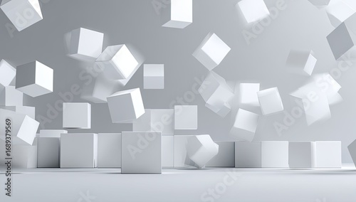Abstract 3D scene of many white cubes