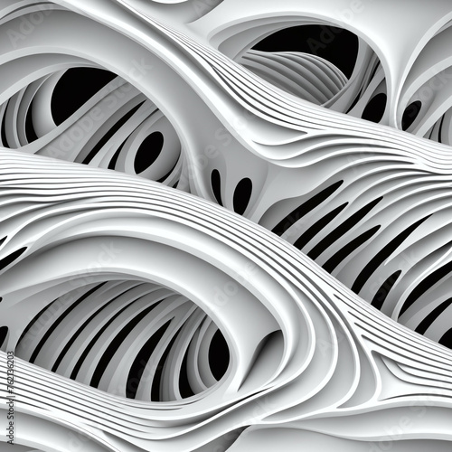 Abstract 3D wavy shapes, Seamless white pattern. Endless background.