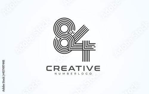Abstract 84 Number Logo. number 84 monogram line style, usable for anniversary, business and logos, flat design logo template, vector illustration