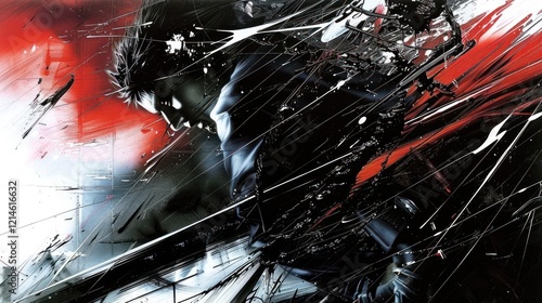 Abstract action scene depicting a dynamic figure amidst vibrant splashes of color and energy