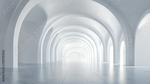 Abstract architecture background, futuristic white arched interior