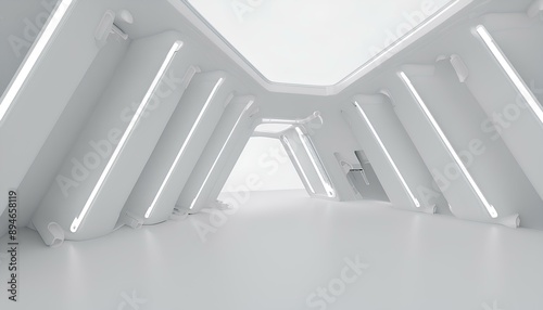 abstract architecture neon background render modern interior silver