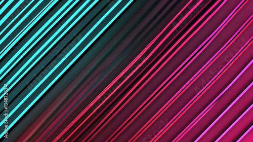 Abstract arrangement with blue and pink parallel diagonal stripes