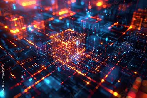 Abstract background blockchain technology data connection Concept rendering of 3D, square, DeFi Decentralized Finance technology.