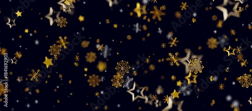Abstract background featuring shining golden stars and snowflakes on a dark night sky perfect for festive designs and Ch