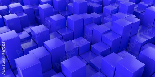 Abstract background of many blue cubes. Geometric design. 3D visualization