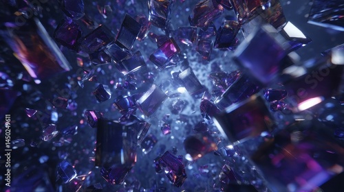 Abstract Background of Shattered Purple and Blue Crystals Falling Dynamically