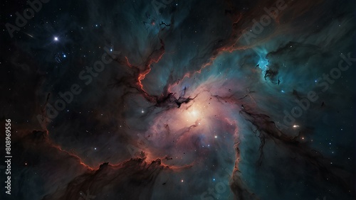 Abstract background of space nebula with stars and galaxies. Concept of space with blue, black, pink and orange colors. AI Generated