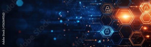 Abstract background with digital security icons and hexagons, representing cyber protection or data resilience in the modern world of technology and business Generative AI