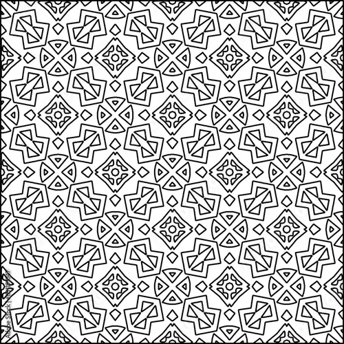 Abstract background with figures from lines. black and white pattern for web page, textures, card, poster, fabric, textile. Monochrome graphic repeating design.
