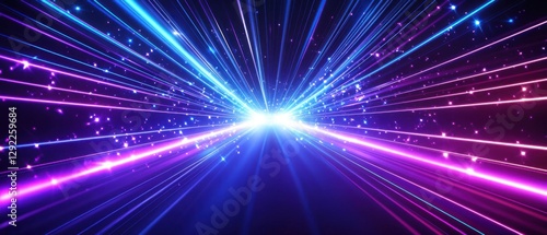 Abstract background with glowing neon light trails in blue and purple, creating a futuristic and energetic atmosphere for technology and space concepts